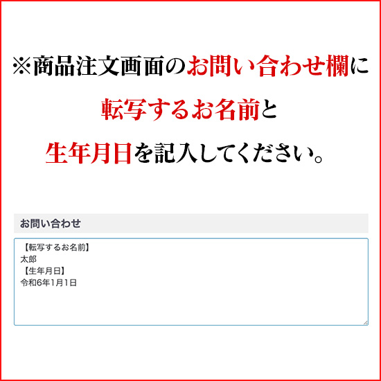 ※商品注文画面のお問い合わせ欄に下記を記入してください。